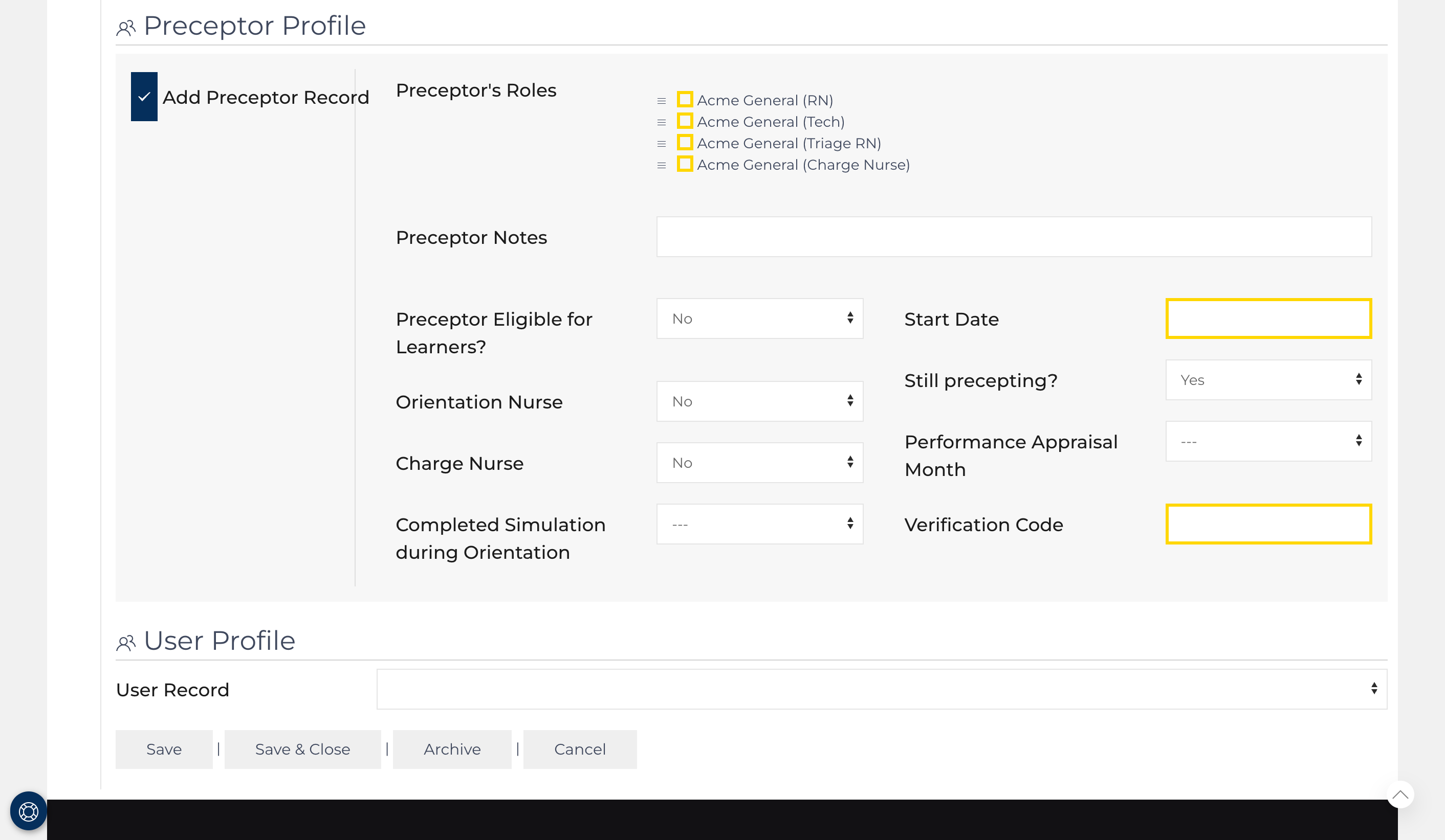 Preceptor Record