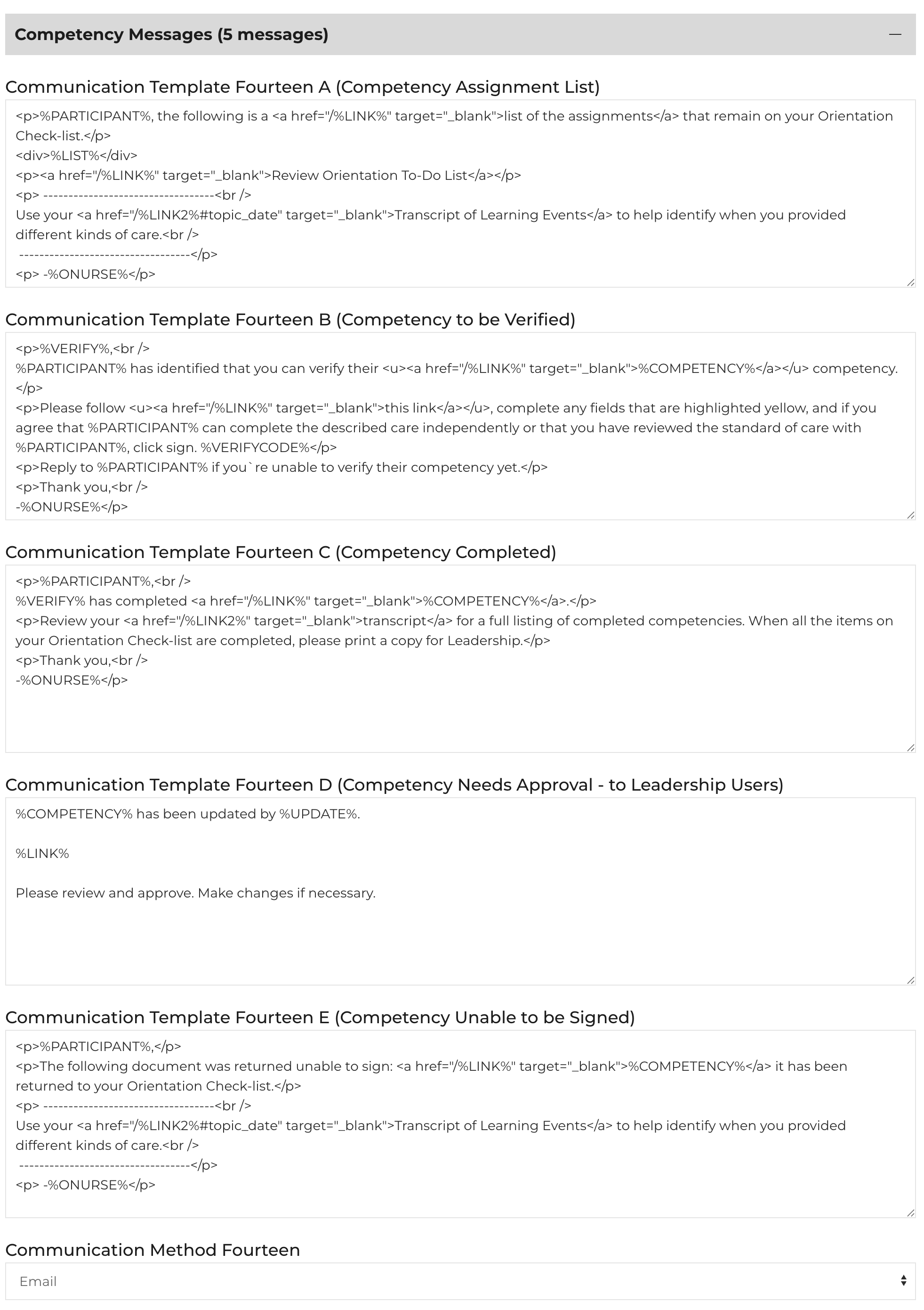 -%ONURSE%</p>Communication Template Fourteen D (Competency Needs Approval - to Leadership Users)