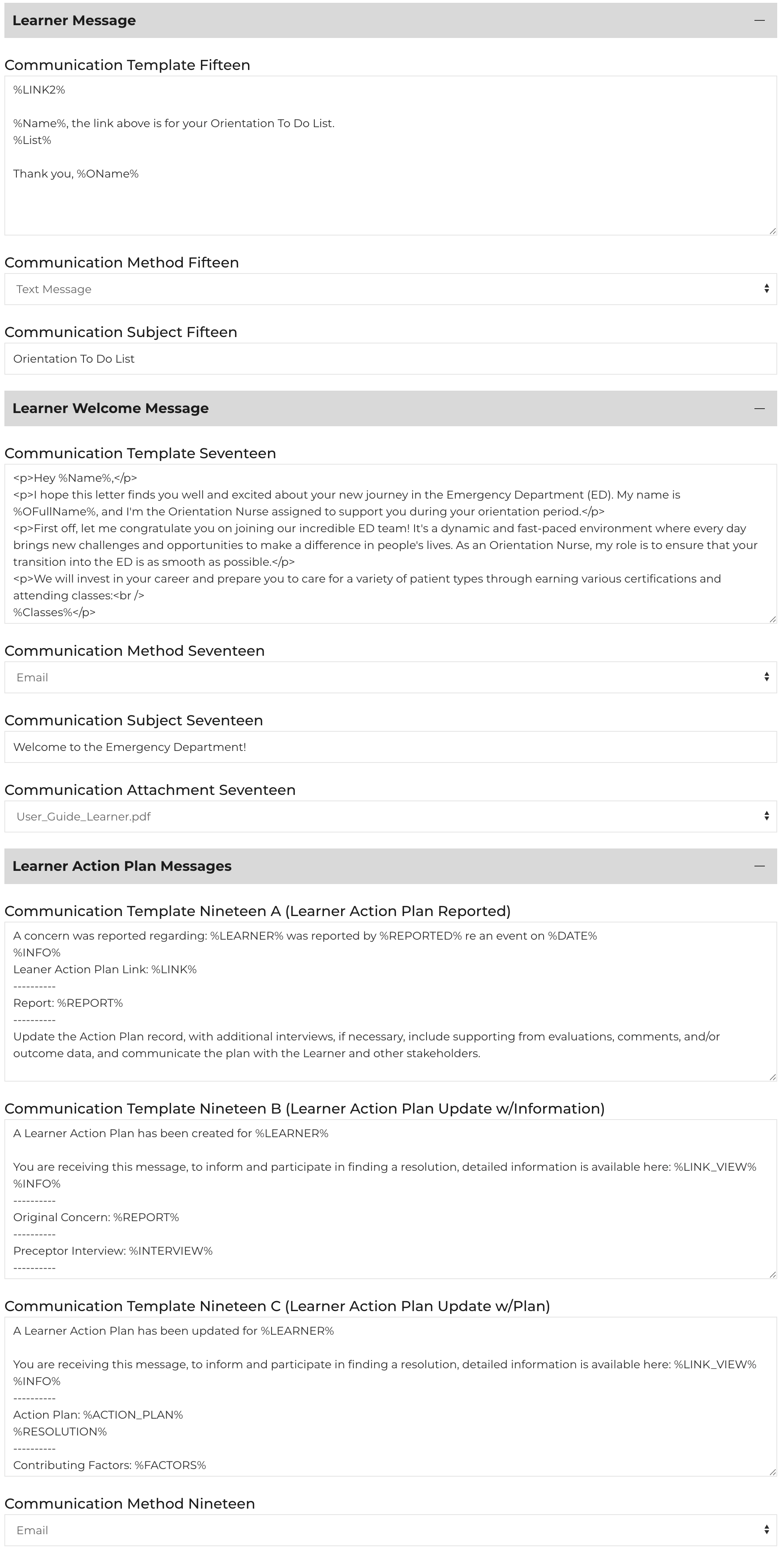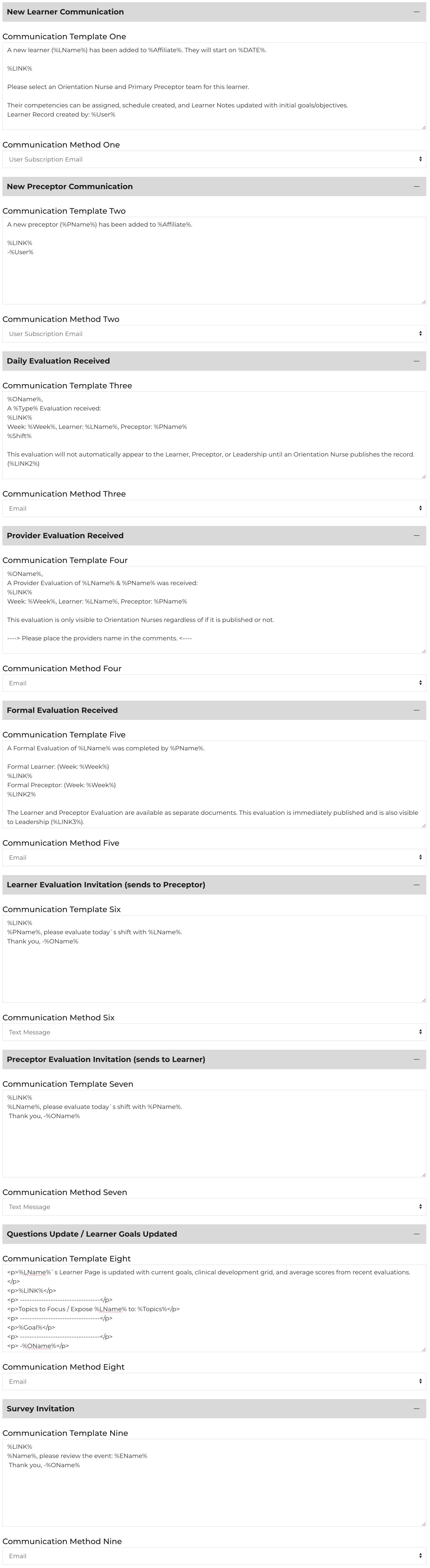 Learner Record created by: %User%Communication Template Two: New Preceptor