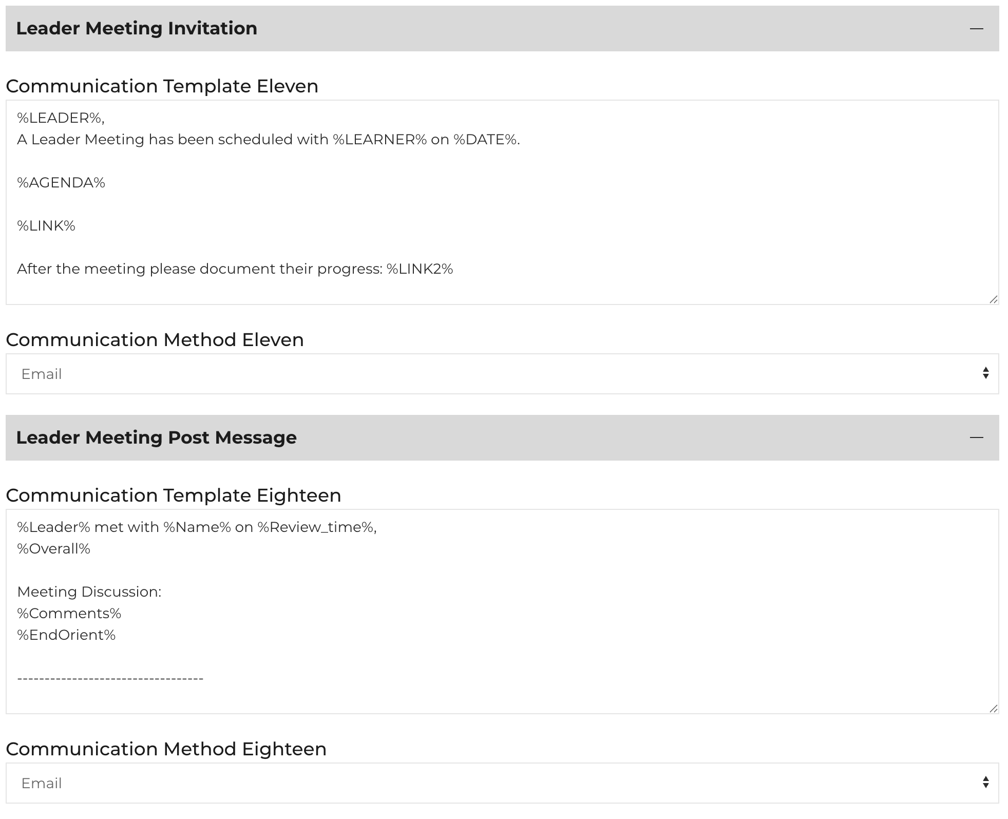 Thank you, -%OName%Leader Meetings