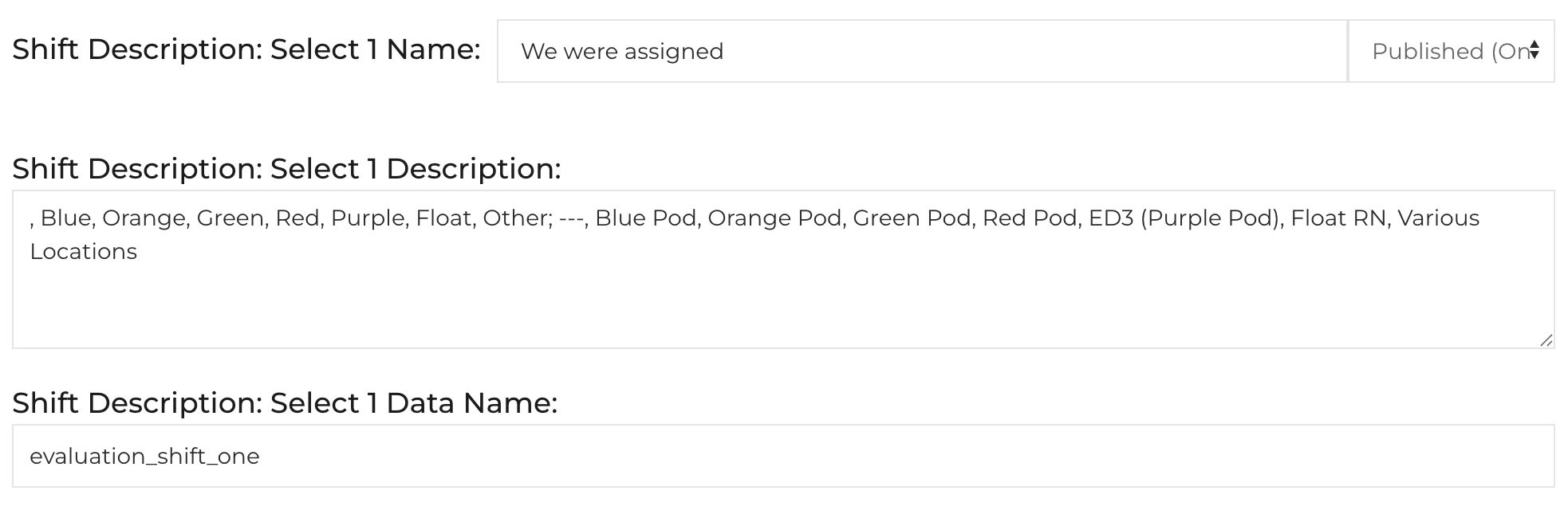 - Published skip Resource Shifts (Daily and Formal Evaluations)